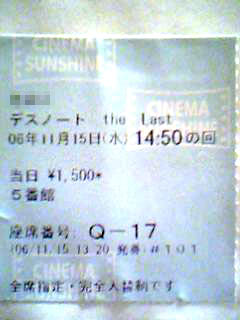 とりあえずパソコンからカキコしてみます。 今日はデスノート後編見てきました。 前編を見たときは後編はどうなってしまうのかと不安でしたが、後編は上手くまとまっていました。良かった。 原作とは違うノートの使い方とかしていてなかなか良い映画だったと思います。